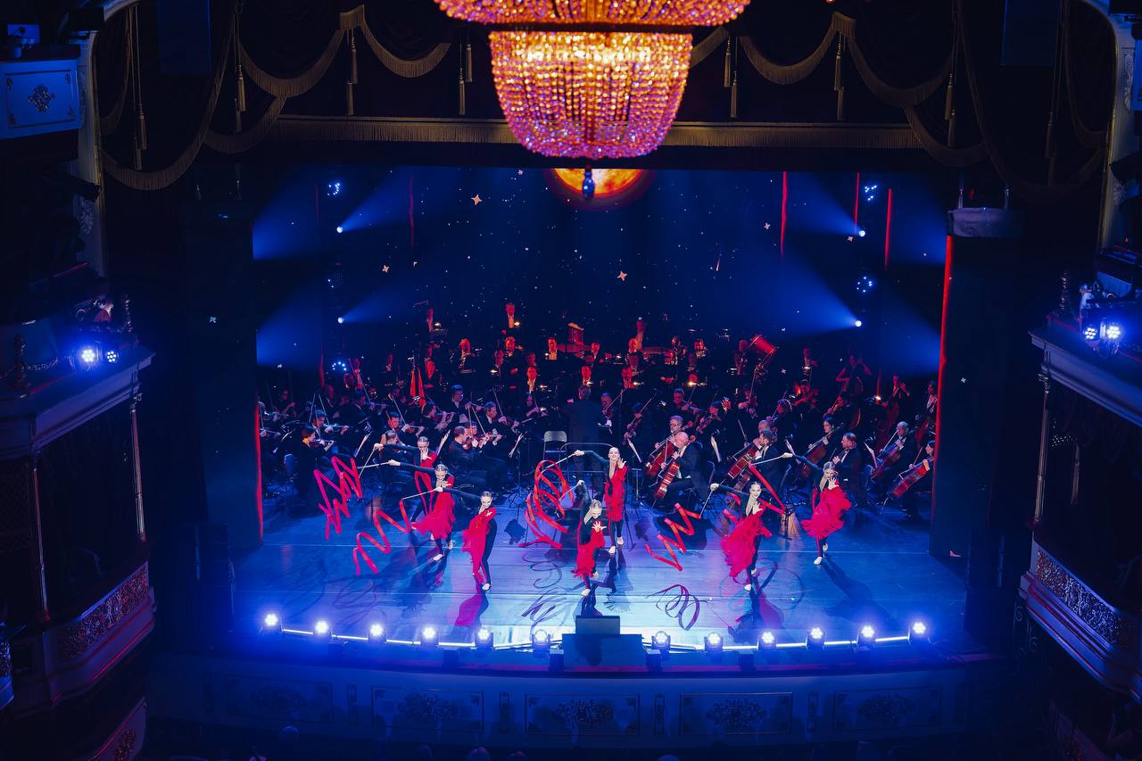 Выступление оркестра с известным дирижёром сопровождалось демонстрацией уникальной коллекции картин, созданных ведущими музеями России специально для мероприятия.
